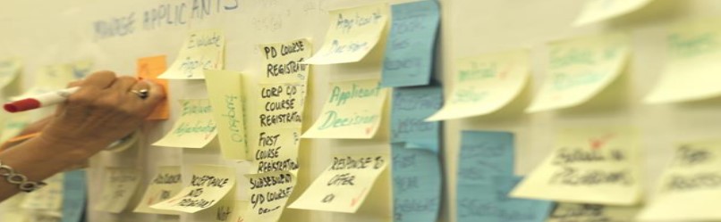 - Use a conference room that has a dry erase board as well as plenty of post it’s on hand. I like post its, because once we have the process, we can take a picture and move them around to help define the new process.