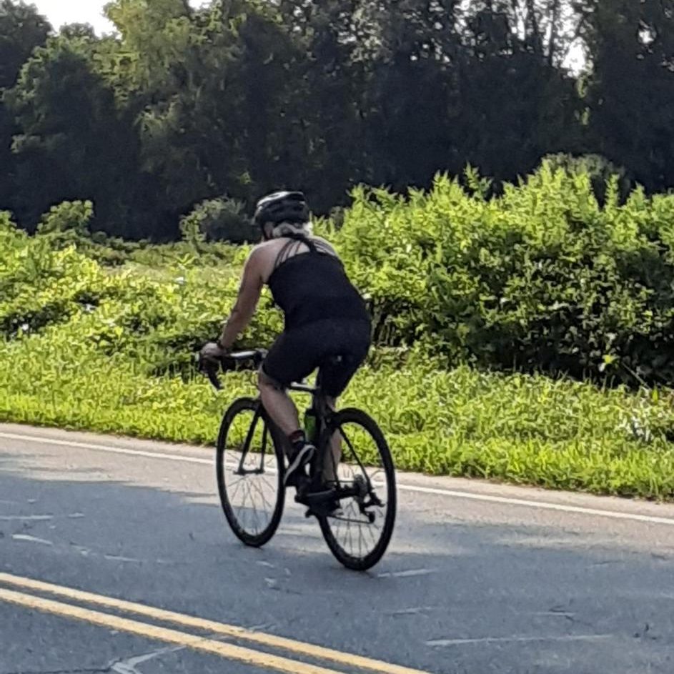 I walked into the transition area still reeling from that swim to dry off and get all my gear on. The woman behind me was struggling to get her wetsuit off, she is stuck and starting to panic, worried about her transition time. I said “hang on, let me help”. There was a little rogue thread caught in the zipper and I got it out then released the zipper. She was very thankful and continued to get ready as did I. I walked my bike out to the mount area and started out on my 15 mile ride. My legs felt great, all the pain and anxiety from that swim had washed away. I was passed by people faster than me and I passed some people as well. All of the athletes cheer each other on and encourage them on their journey. As I approached athlete 172 I recognized her from the station next to me in transition. I also noticed her age written on her left calf, 13. As I passed her on the left, I looked over and smiled and told her what a great job she was doing. I was proud of her, what a endeavor to take on at 13. I made it through the rolling hills of Greenfield to the covered bridge and came to the bottom of “the hill”. This was another challenge I was not prepared for, my indoor training did not prepare me for this. This challenge, however, did not upset me like the swim. I cycled as much as I could, then got off and walked to the top. I was not alone, I cheered on the cyclists going by me, and they cheered me on while I was walking my bike as well. I finished lap one strong, and as I was whizzing past the swimming area, I again could hear my kids, husband and strangers cheering and it gave me life. (see video my daughter took below) I continued the next 7 miles enjoying the scenery, cheering on fellow athletes and planning my run.